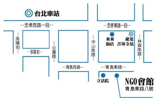 二、 活動地點:臺北市非政府組織(NGO)會館演講室(台北市中正區青島東路8號)