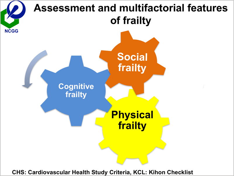 NCGG 是個「專注研究人類怎麼老」的研究單位,解決問題首從醫學下手。首先挑出失能排行榜第一的失智症,研究失智前期有沒有徵兆以便提早預防,這個道理就像早先控制高血壓即降低中風發生率一樣。研究統計發現,「衰弱症」(frailty)與失智高度相關,若能改善衰弱症,有助提高老人生活品質,進而減輕後面的醫療照護與長照支出。