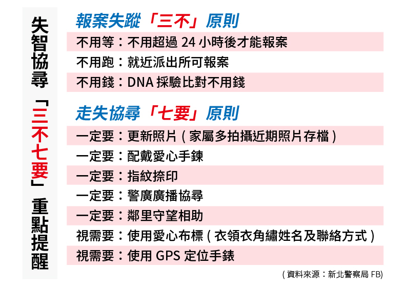 圖/失蹤協尋的「三不七要」重點提醒。