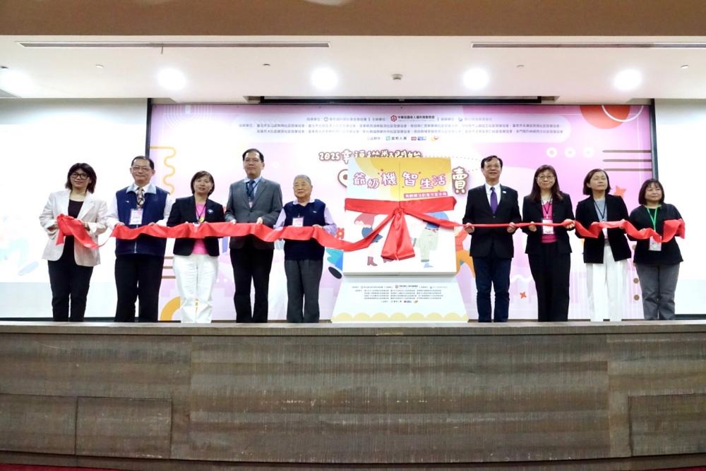 | 啟動儀式由左至右聯合報健康事業部營運長吳貞瑩、工研院企劃與研發處專案組長宋麟祥、中華金點社區促進聯盟秘書長邱秀蘭、衛生福利部社家署署長周道君、衛生福利部部長石崇良、老盟理事長方力脩、老盟祕書長張淑卿、富邦人壽經營企劃處資深副總經理陳秀玲、嘉南藥理大學社會工作系助理教授溫如慧。 |