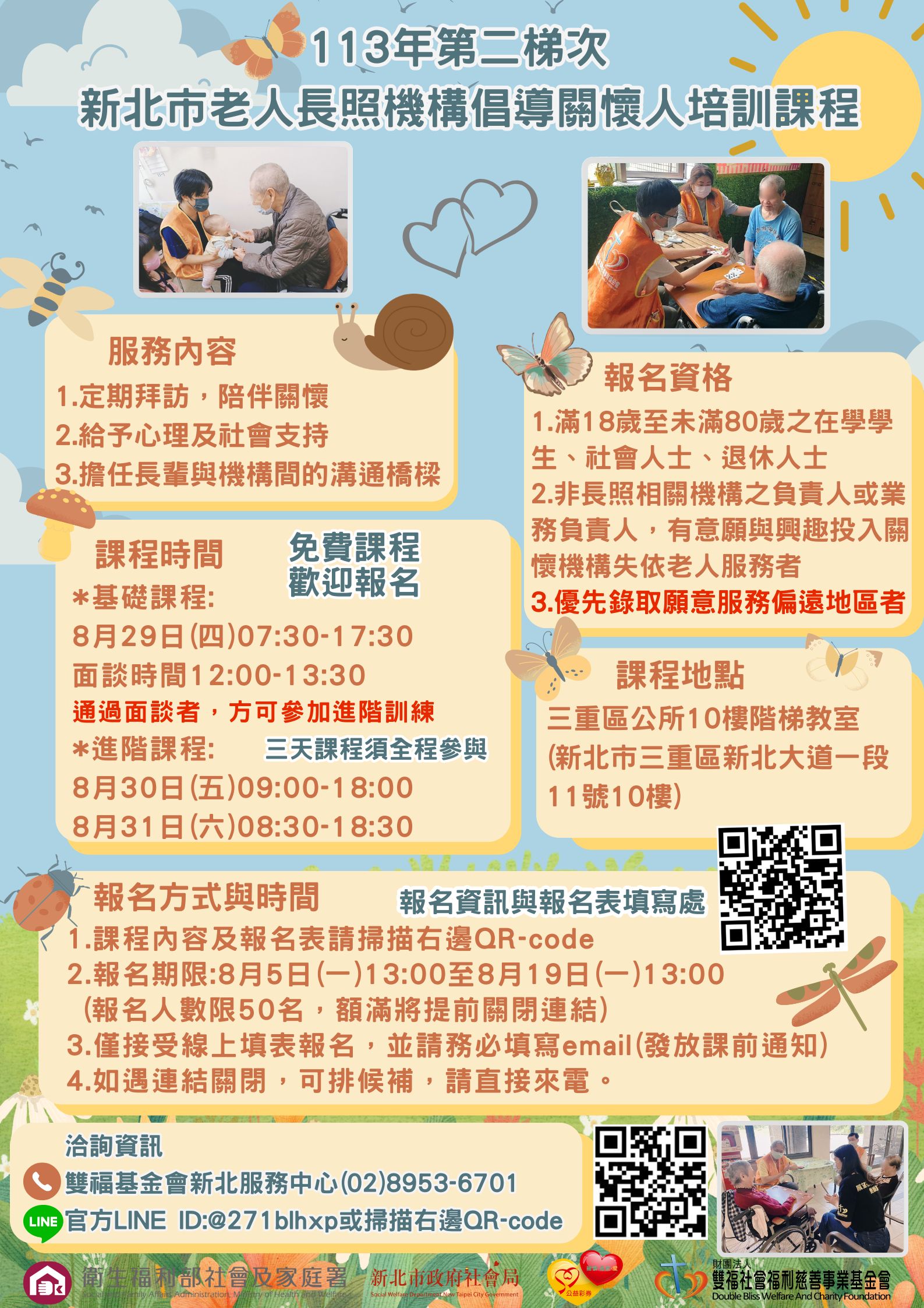 【轉知訊息-8/19截止】新北倡導關懷人第二梯次培訓課程